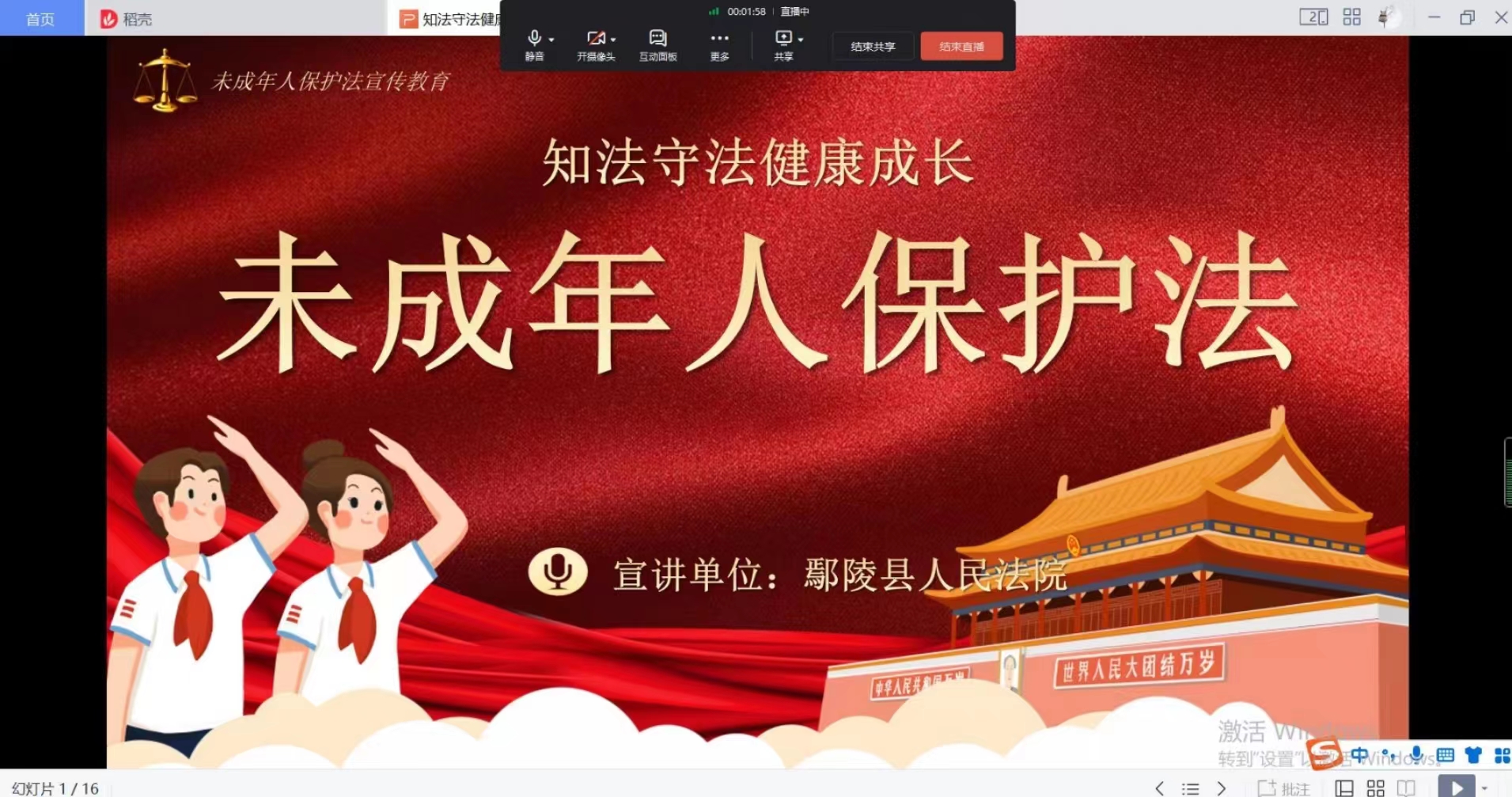 为充分发挥审判职能作用,依法保护未成年人合法权益,积极预防未成年违法犯罪行为,2022年11月10日,鄢陵县人民法院刑事庭干警结合工作实际,通过网络为辖区学校新时代精英高一学生上了一堂生动的法治课,,进一步增强未成年人法治观念和法律意识,维护未成年人的合法权益,预防未成年人犯罪。